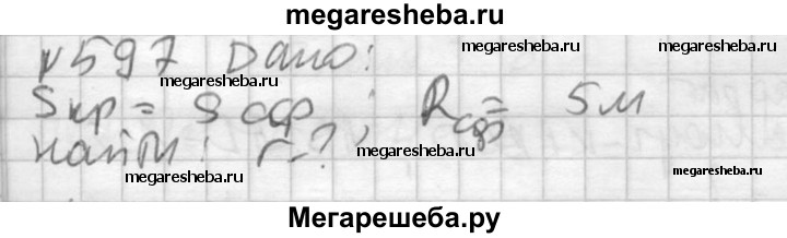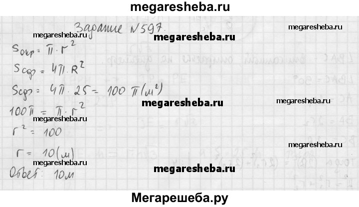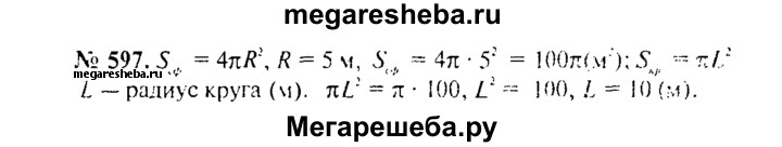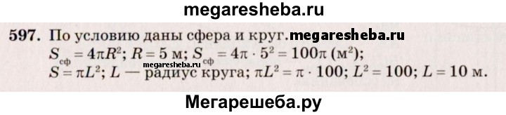 597. Вычислите радиус круга, площадь которого равна площади сферы радиуса 5 м.