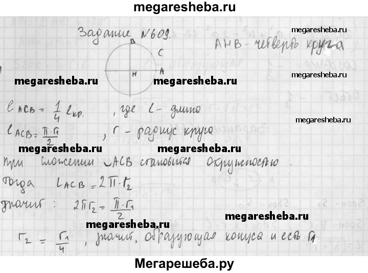 609. Четверть круга свернута в коническую поверхность. Докажите, что образующая конуса в четыре раза больше радиуса основания.