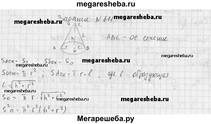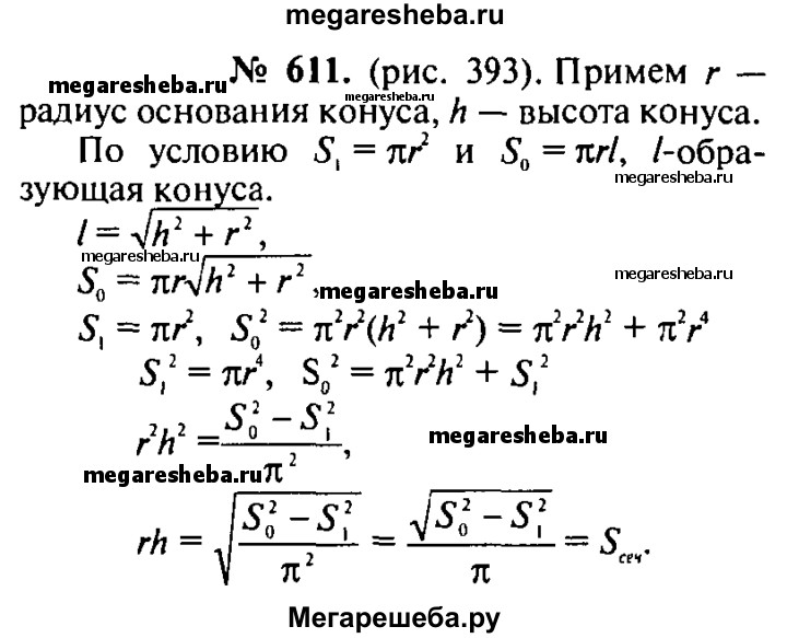 611. Площадь основания конуса равна S₁ а площадь боковой поверхности равна S₀. Найдите площадь осевого сечения конуса.