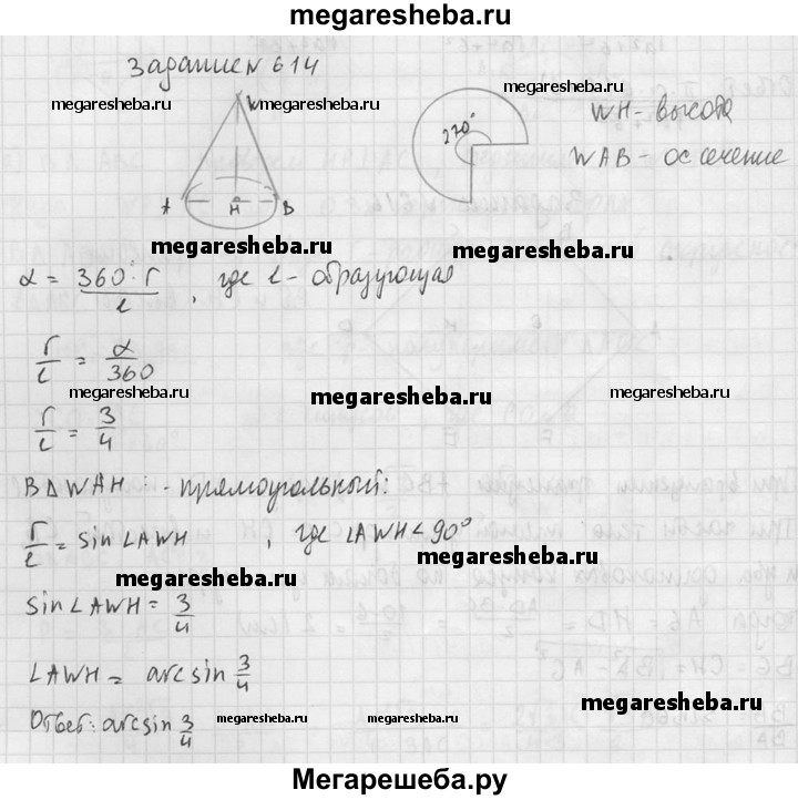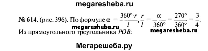 614. Найдите угол между образующей и высотой конуса, если разверткой его боковой поверхности является сектор с дугой 270°.