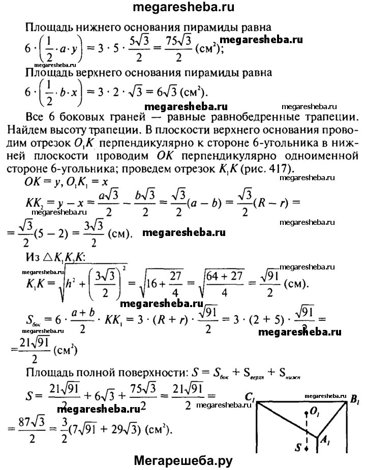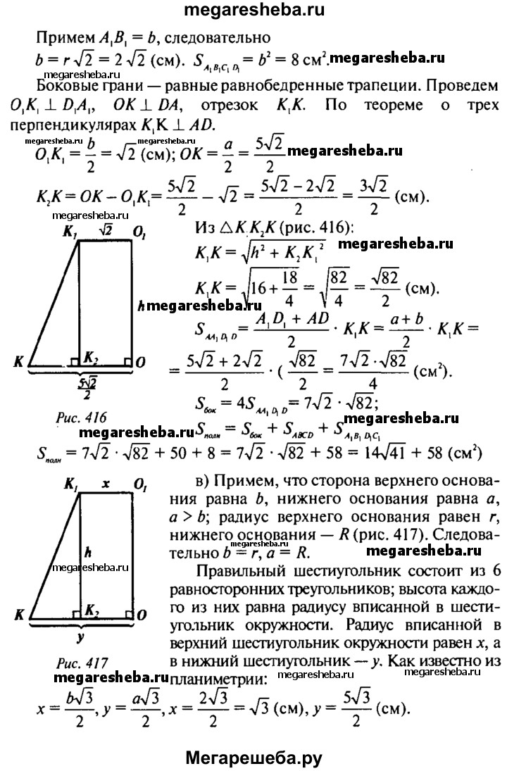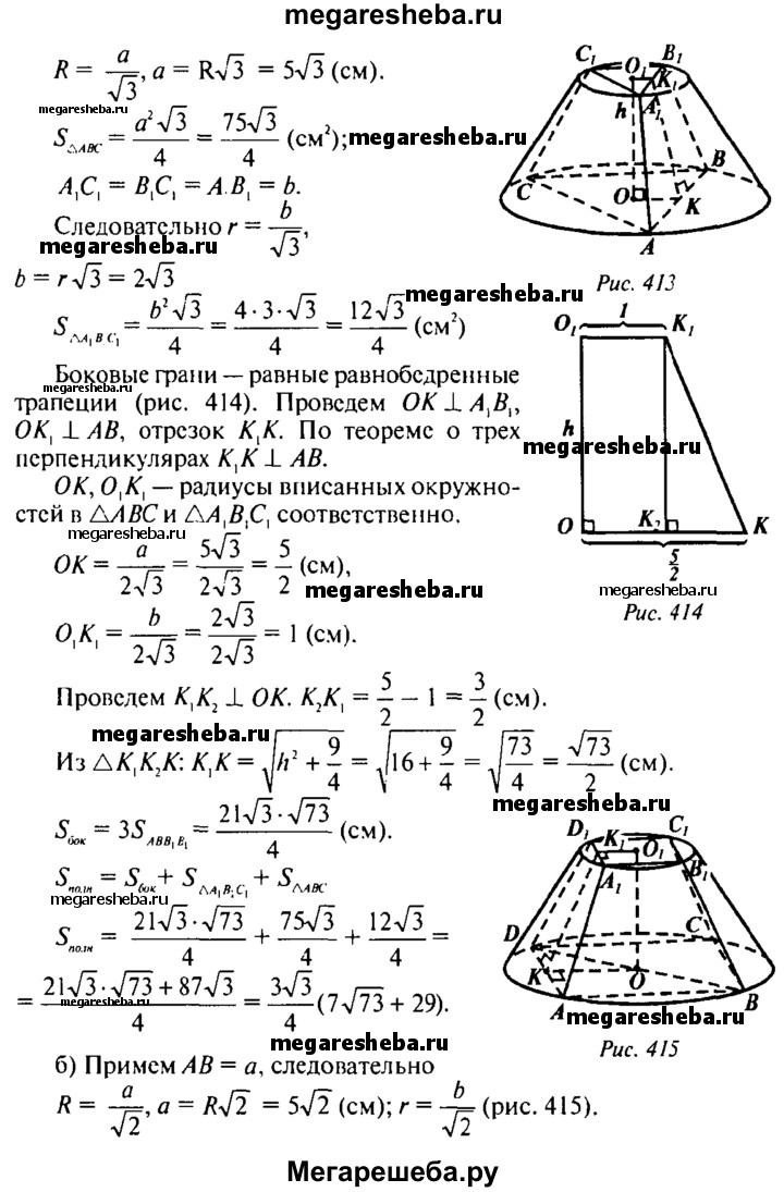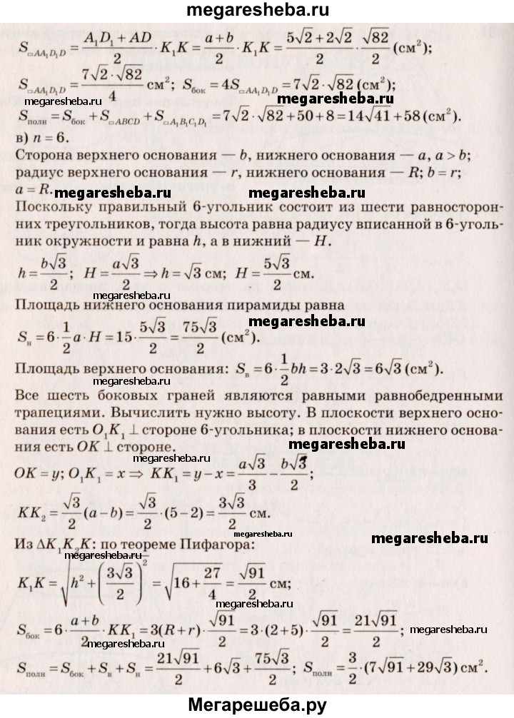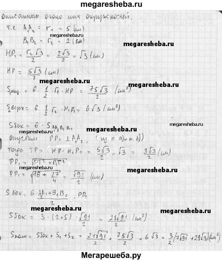 631. В усеченный конус вписана правильная усеченная n-угольная пирамида (т. е. основания пирамиды вписаны в основания усеченного конуса). Радиусы оснований усеченного конуса равны 2 см и 5 см, а высота равна 4 см. Вычислите площадь полной поверхности пирамиды при: