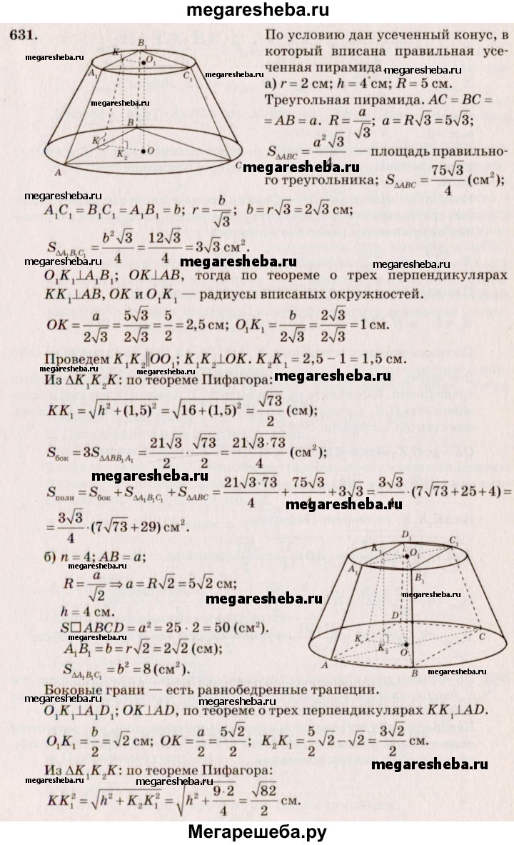 Подробный решебник (ГДЗ) по Геометрии за 10‐11 (десятый‐одиннадцатый) класс - готовый ответ 11 класс - 631. Авторы учебника: Атанасян, Бутузов, Кадомцев, Киселева, Позняк, Базовый и углубленный уровень. Издательство: Просвещение 2015-2023.