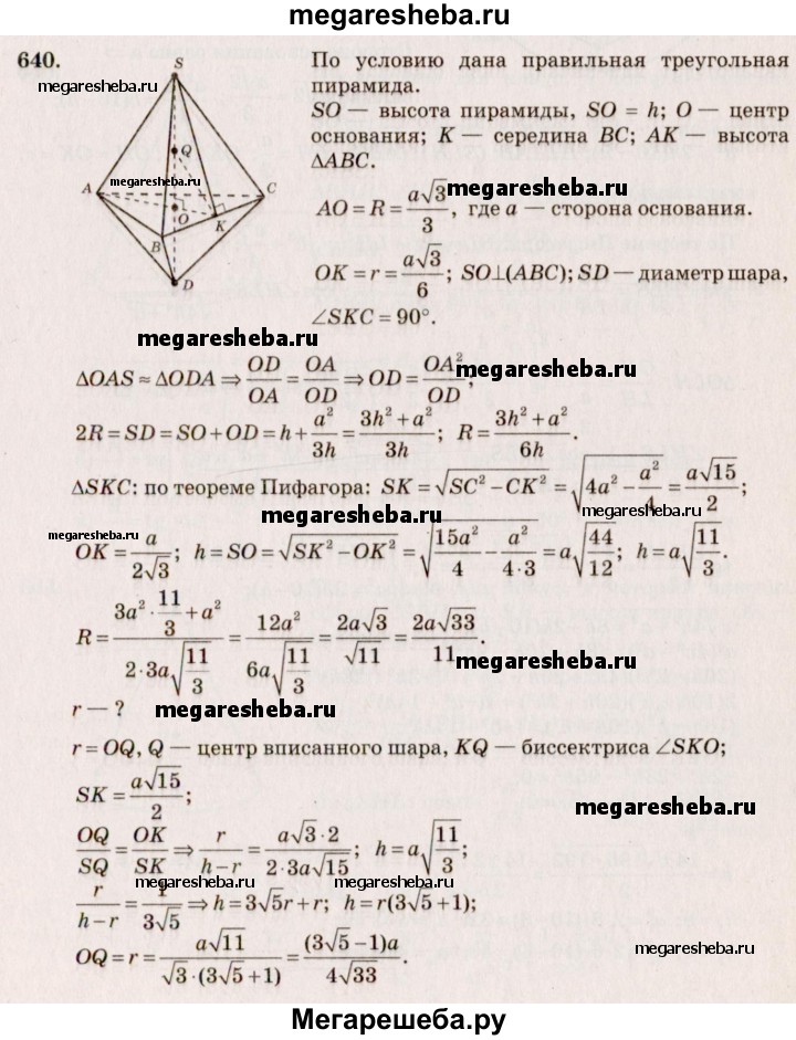 Подробный решебник (ГДЗ) по Геометрии за 10‐11 (десятый‐одиннадцатый) класс - готовый ответ 11 класс - 640. Авторы учебника: Атанасян, Бутузов, Кадомцев, Киселева, Позняк, Базовый и углубленный уровень. Издательство: Просвещение 2015-2023.