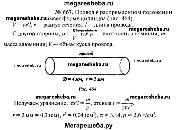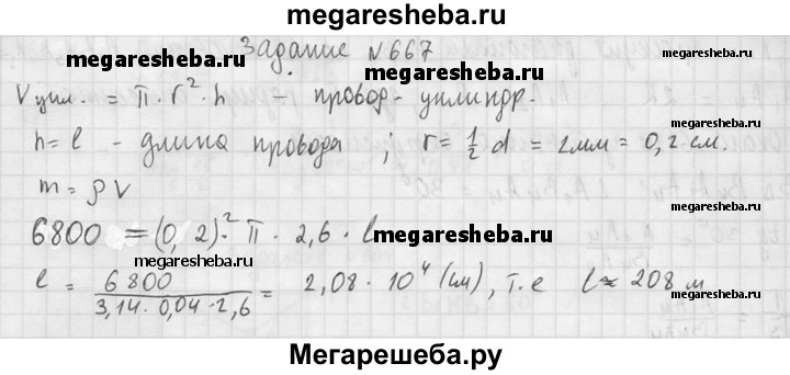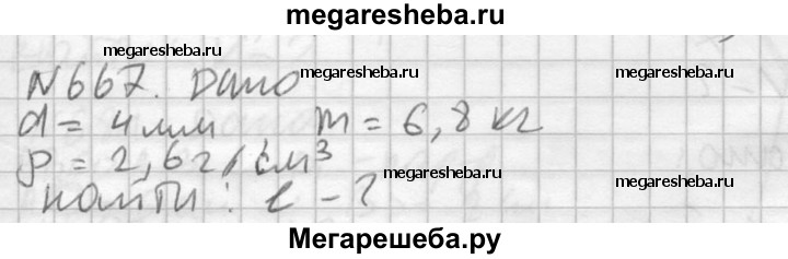 667. Алюминиевый провод диаметром 4 мм имеет массу 6,8 кг. Найдите длину провода (плотность алюминия 2,6 г/см³).