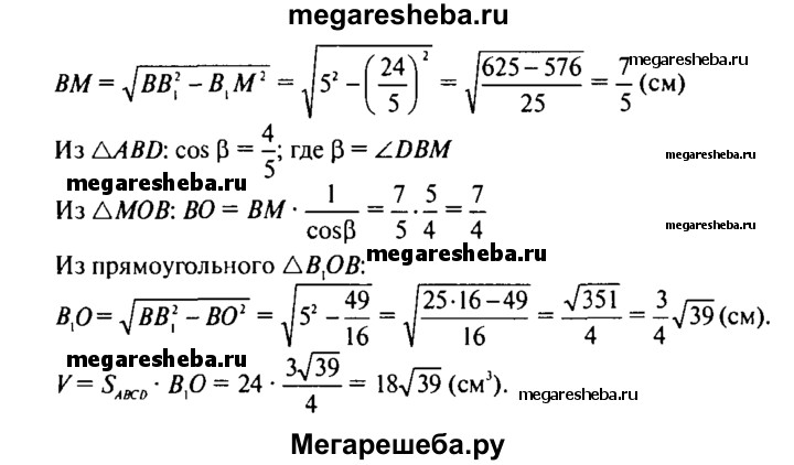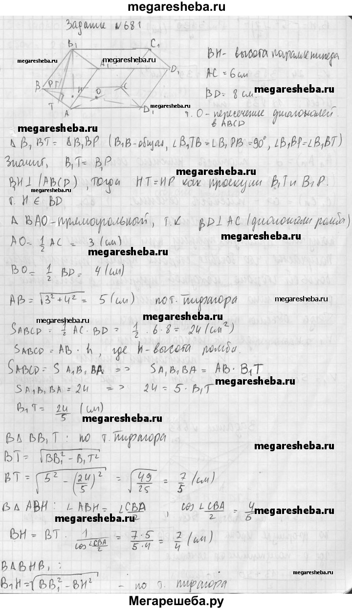 681. Все грани параллелепипеда — равные ромбы, диагонали которых равны 6 см и 8 см. Найдите объем параллелепипеда.