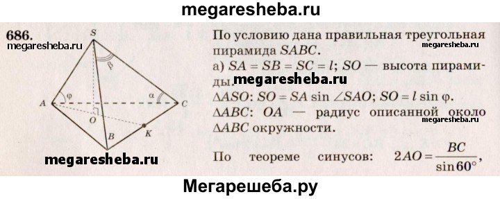 Подробный решебник (ГДЗ) по Геометрии за 10‐11 (десятый‐одиннадцатый) класс - готовый ответ 11 класс - 686. Авторы учебника: Атанасян, Бутузов, Кадомцев, Киселева, Позняк, Базовый и углубленный уровень. Издательство: Просвещение 2015-2023.