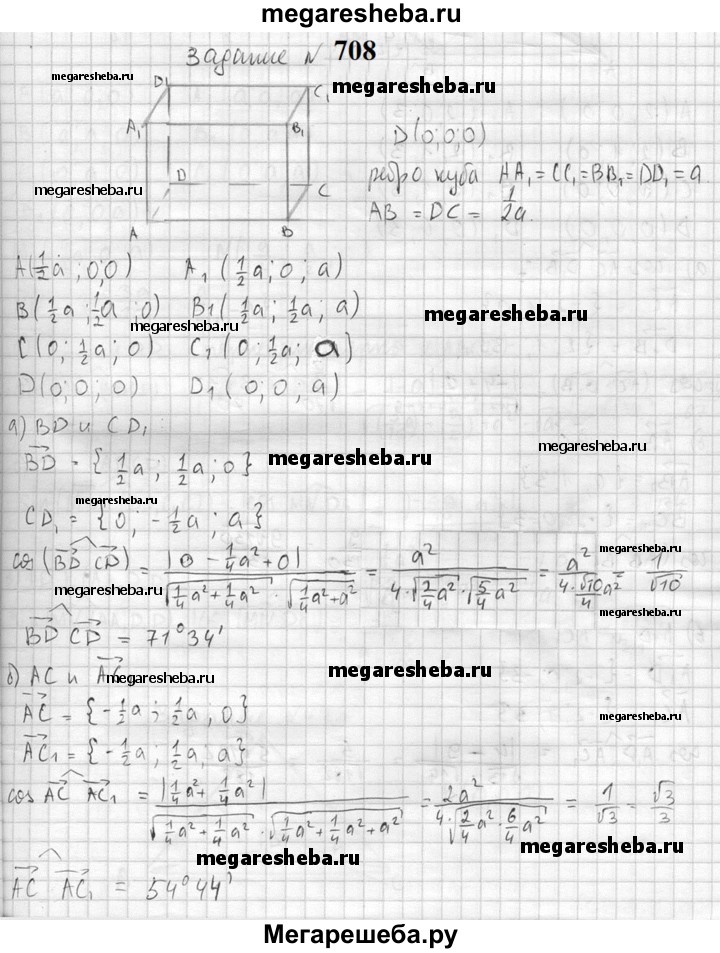 Подробный решебник (ГДЗ) по Геометрии за 10‐11 (десятый‐одиннадцатый) класс - готовый ответ 11 класс - 708. Авторы учебника: Атанасян, Бутузов, Кадомцев, Киселева, Позняк, Базовый и углубленный уровень. Издательство: Просвещение 2015-2023.