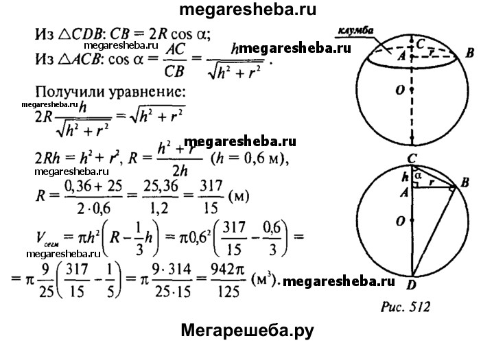 715. Сколько кубометров земли потребуется для устройства клумбы, имеющей форму шарового сегмента с радиусом основания 5 м и высотой 60 см?