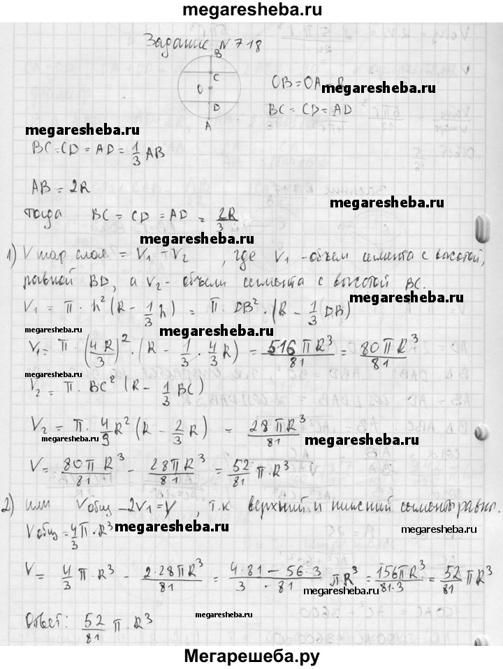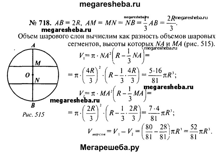 Подробный решебник (ГДЗ) по Геометрии за 10‐11 (десятый‐одиннадцатый) класс - готовый ответ 11 класс - 718. Авторы учебника: Атанасян, Бутузов, Кадомцев, Киселева, Позняк, Базовый и углубленный уровень. Издательство: Просвещение 2015-2023.