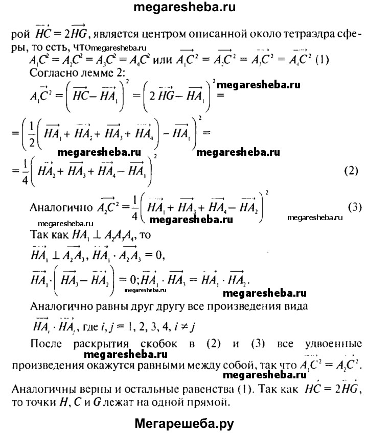 814. Все высоты тетраэдра пересекаются в точке Н. Докажите, что точка Н, центр О описанной сферы и точка G пересечения отрезков, соединяющих вершины с точками пересечения медиан противоположных граней тетраэдра, лежат на одной прямой (прямая Эйлера), причем точки О и Н симметричны относительно точки G.