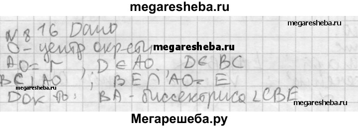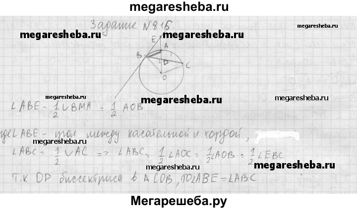 816. Через точку D, лежащую на радиусе OA окружности с центром О, проведена хорда ВС, перпендикулярная к OA, а через точку В проведена касательная к окружности, пересекающая прямую OA в точке Е. Докажите, что луч ВА — биссектриса угла СВЕ.