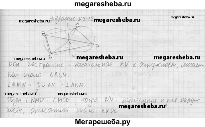 819. Точка М лежит внутри четырехугольника ABCD. Докажите, что угол AMD =угол АВМ + угол MCD тогда и только тогда, когда окружности, описанные около треугольников АВМ и MCD, имеют в точке М общую касательную.
