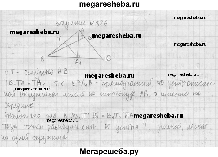 826. Отрезки АА₁ и ВВ₁ — высоты треугольника ABC. Докажите, что точки А₁ В₁ А₁ и В₁ лежат на одной окружности.