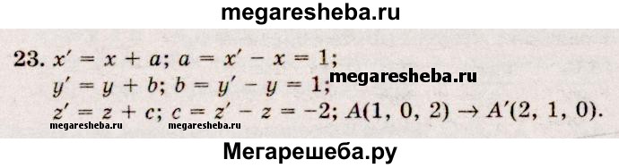 23. Найдите значения а, Ь, с в формулах параллельного переноса х' = х + а, у' = у + b, z' = z + с, если при этом параллельном переносе точка А' (1; 0; 2) переходит в точку А' (2; 1; 0).