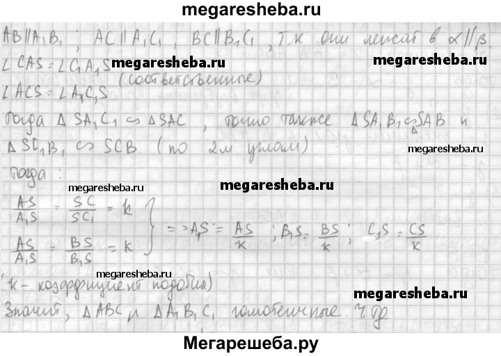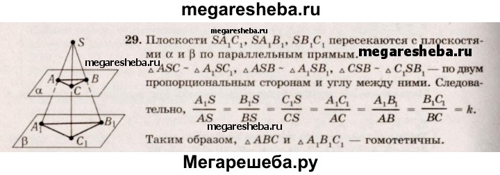 29. Три прямые, проходящие через точку S, пересекают данную плоскость в точках А, В, С, а параллельную ей плоскость в точках A1 B1 С1. Докажите, что треугольники ABC и А1В1С1 гомотетичны.