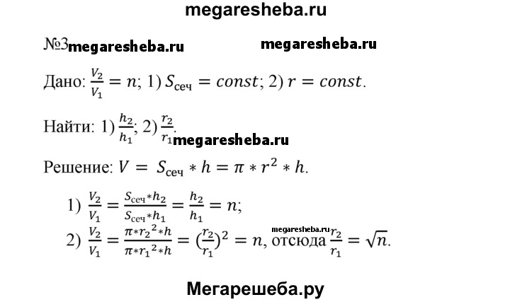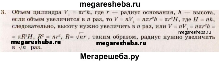 3. Во сколько раз надо увеличить высоту цилиндра, не меняя его основание, чтобы объем увеличился в n раз? Во сколько раз надо увеличить радиус основания цилиндра, не меняя высоту, чтобы объем увеличился в n раз?