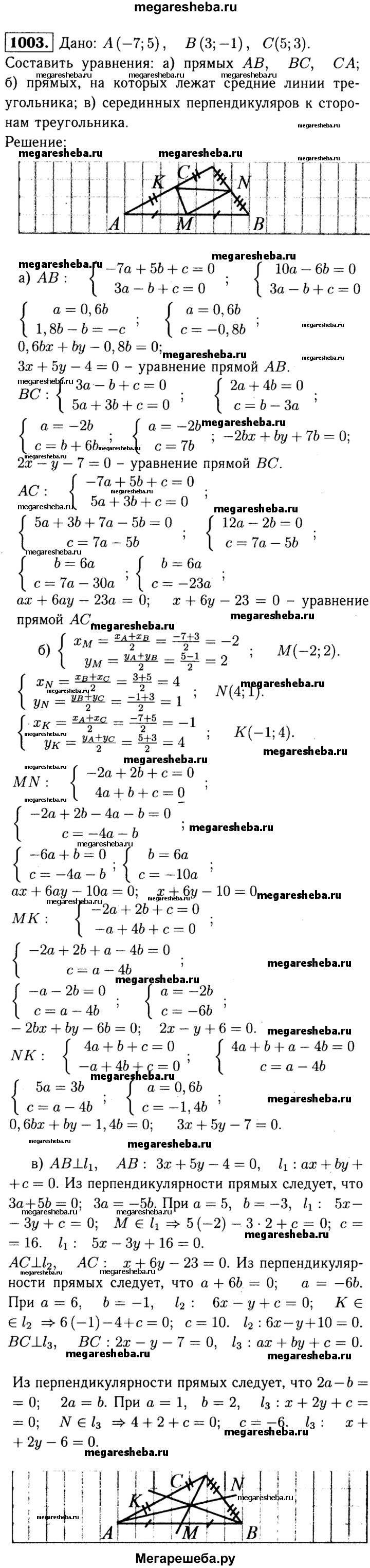 Подробный решебник (ГДЗ) по Геометрии за 7‐9 (седьмой‐девятый) класс - готовый ответ задача - 1003. Авторы учебника: Атанасян, Бутузов, Кадомцев, Позняк, Юдин. Издательство: Просвещение 2016-2025.