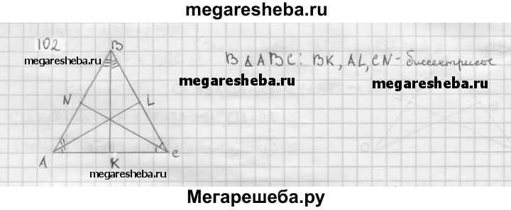 102 Начертите треугольник. С помощью транспортира и линейки проведите его биссектрисы.