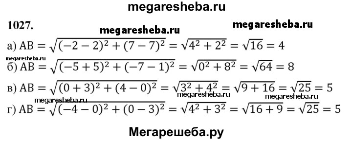 Подробный решебник (ГДЗ) по Геометрии за 7‐9 (седьмой‐девятый) класс - готовый ответ задача - 1027. Авторы учебника: Атанасян, Бутузов, Кадомцев, Позняк, Юдин. Издательство: Просвещение 2016-2025.