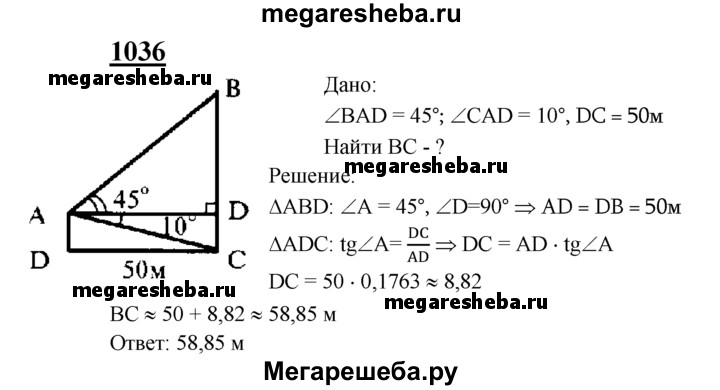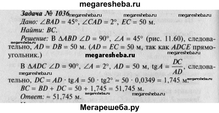 Гдз по геометрии 7-9 класс Атанасян, Бутузов ответ на номер № 1036