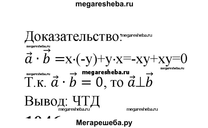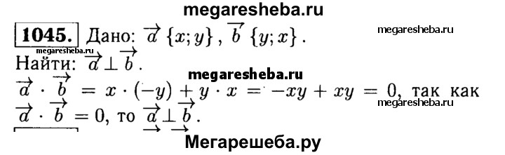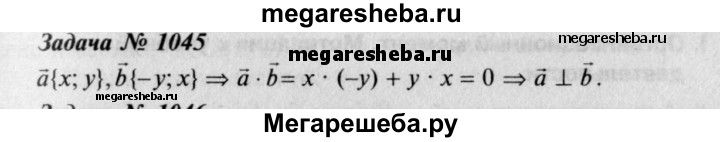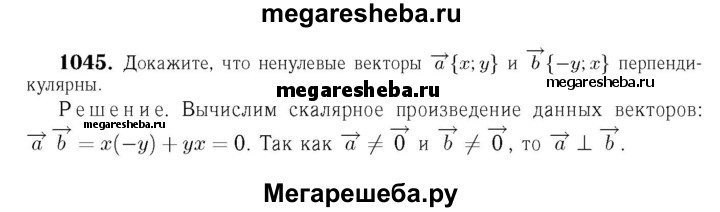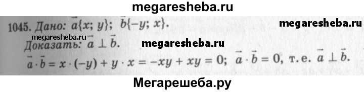 1045 Докажите, что ненулевые векторы а {х; у) и b {-у; х) перпендикулярны.