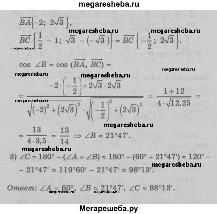 1049 Q Найдите углы треугольника с вершинами А (-1; √3), В (1; √3) и C( ½ ; √3).