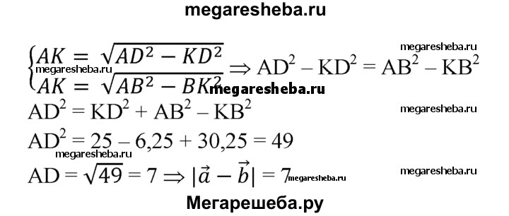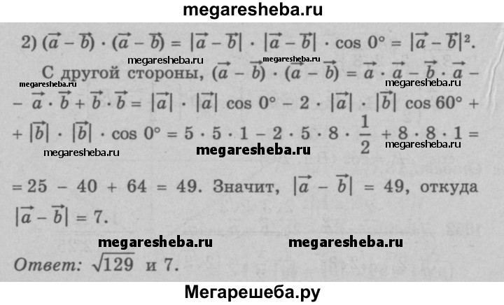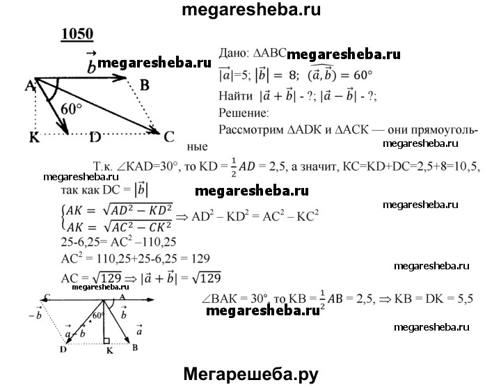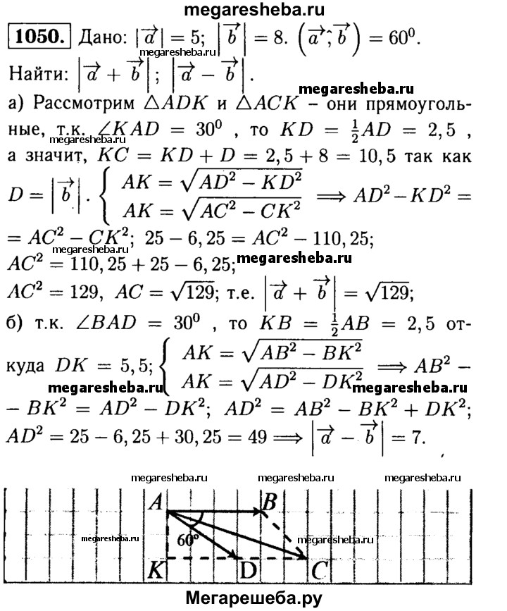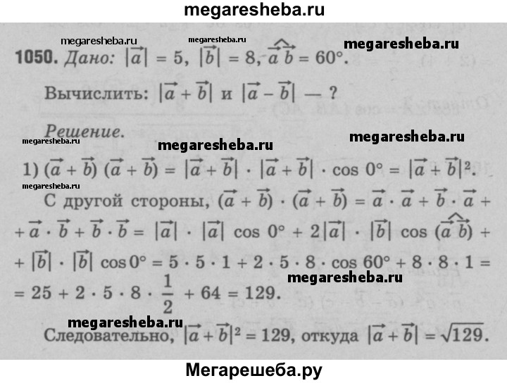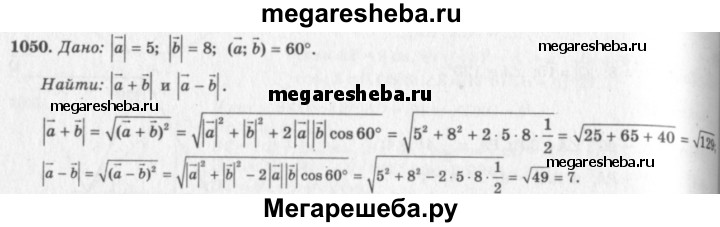 1050 Вычислите |а + b| и |а-b|, если |а| = 5, |b| = 8, а b = 60°.