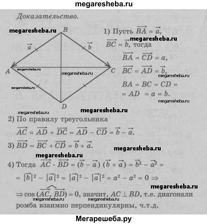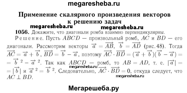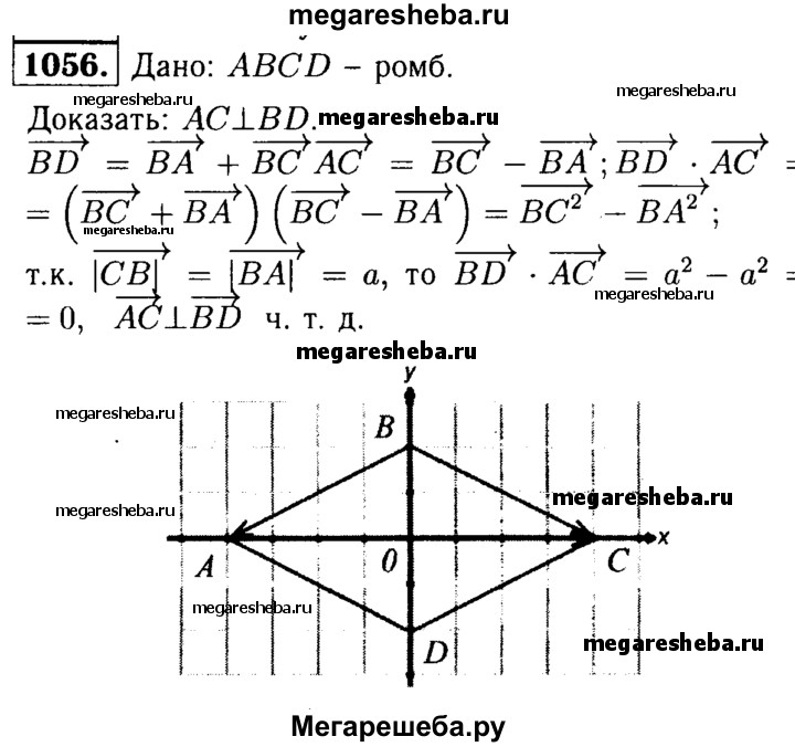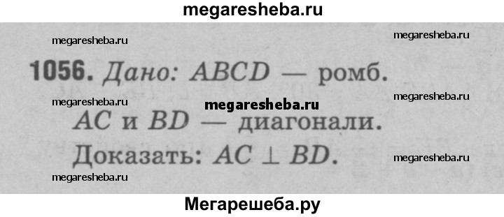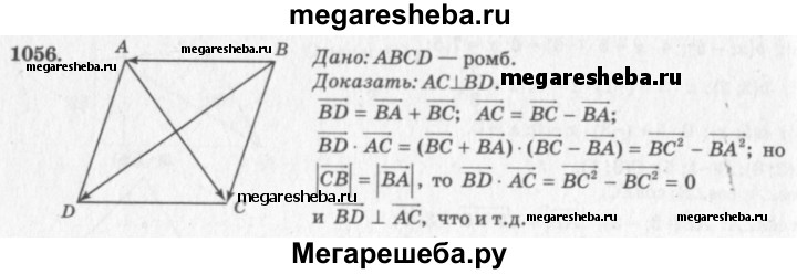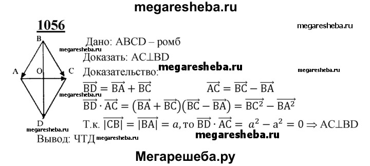 1056 Докажите, что диагонали ромба взаимно перпендикулярны.