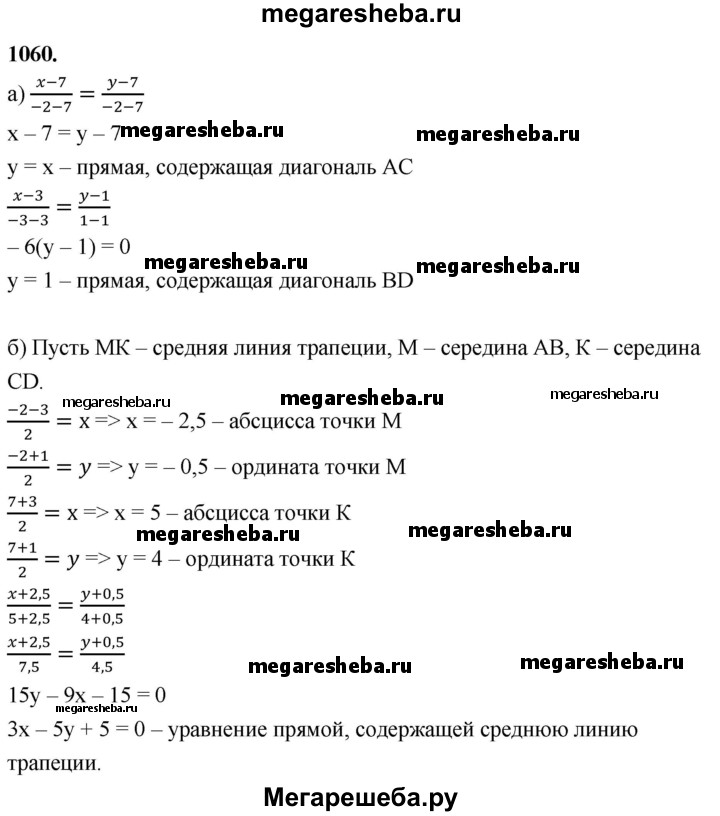 Подробный решебник (ГДЗ) по Геометрии за 7‐9 (седьмой‐девятый) класс - готовый ответ задача - 1060. Авторы учебника: Атанасян, Бутузов, Кадомцев, Позняк, Юдин. Издательство: Просвещение 2016-2025.