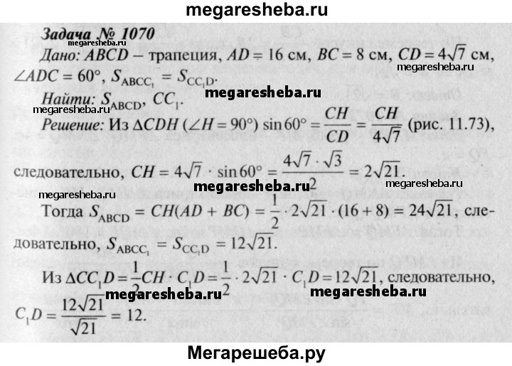 Гдз по геометрии 7-9 класс Атанасян, Бутузов ответ на номер № 1070