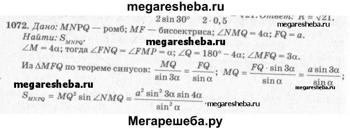 Гдз по геометрии 7-9 класс Атанасян, Бутузов ответ на номер № 1072