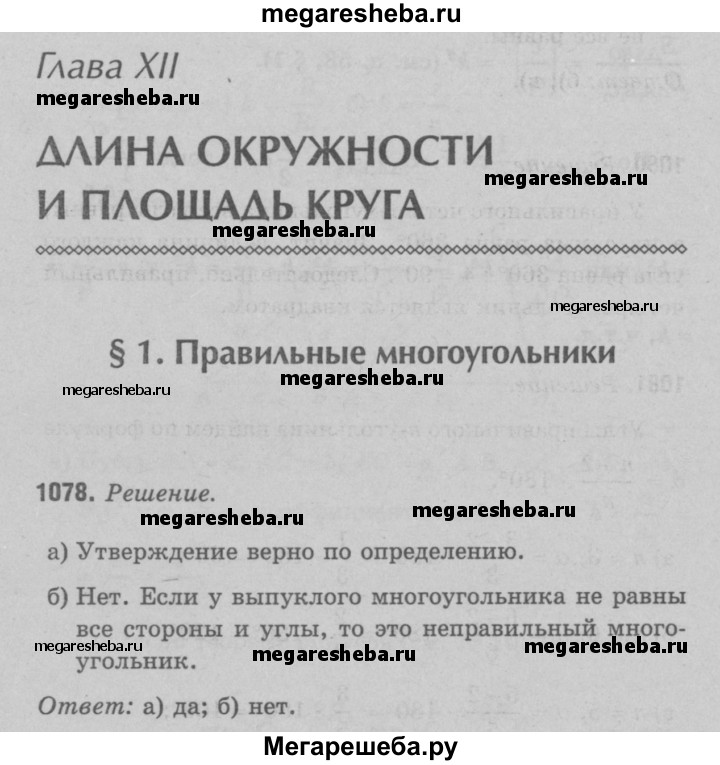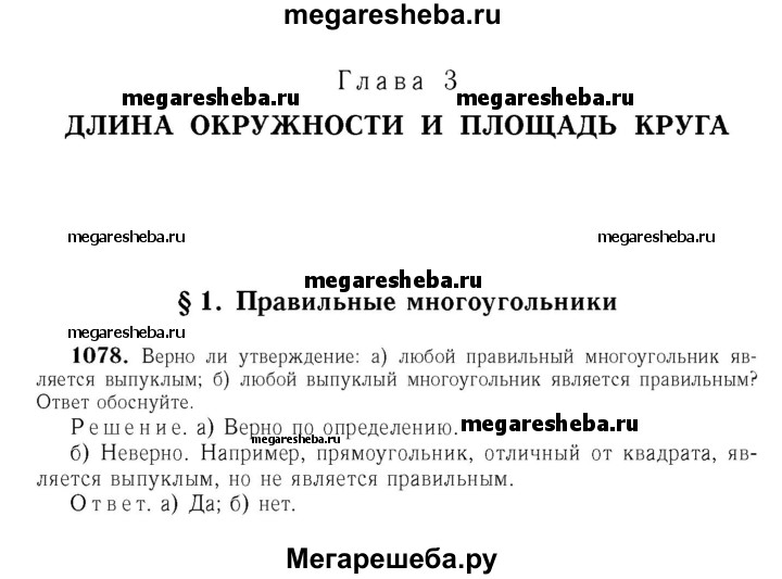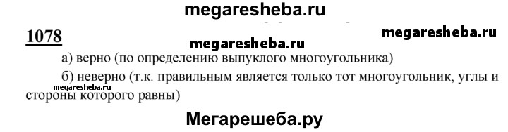 1078 Верно ли утверждение: а) любой правильный многоугольник является выпуклым; б) любой выпуклый многоугольник является правильным? Ответ обоснуйте.