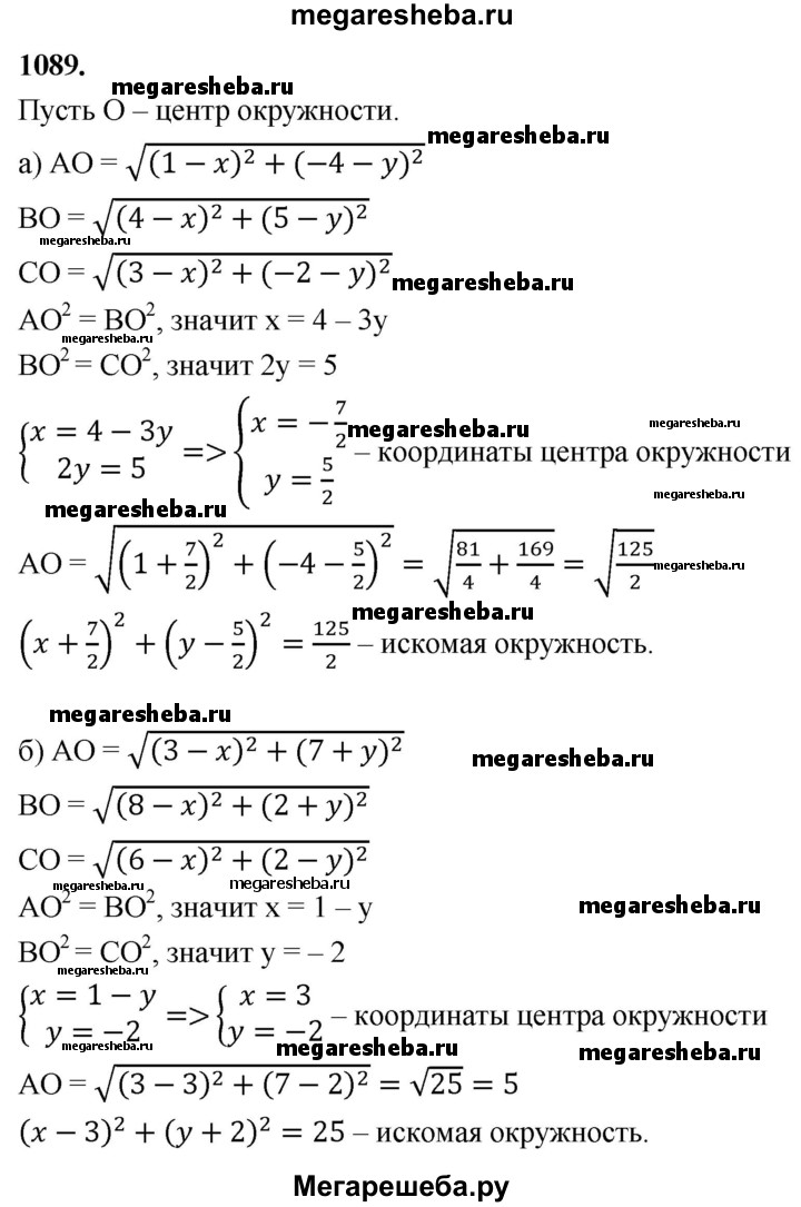 Гдз по геометрии 7-9 класс Атанасян, Бутузов ответ на номер № 1089