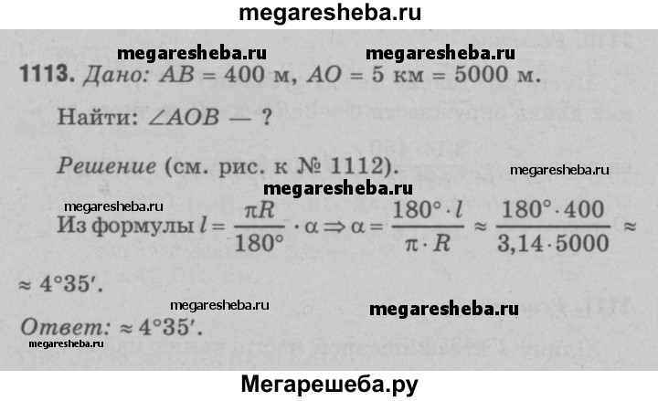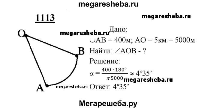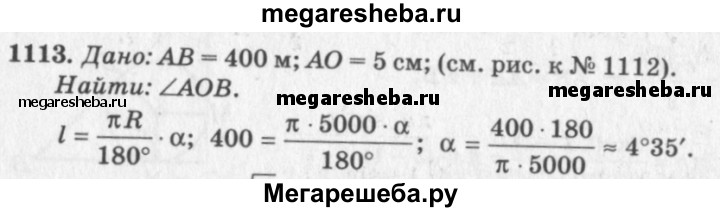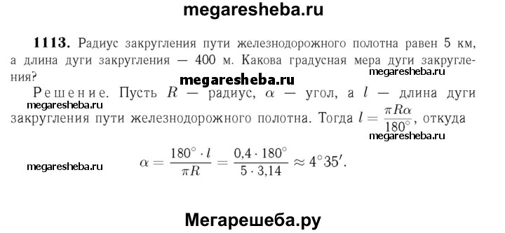 1113 Радиус закругления пути железнодорожного полотна равен 5 км, а длина дуги закругления — 400 м. Какова градусная мера дуги закругления?