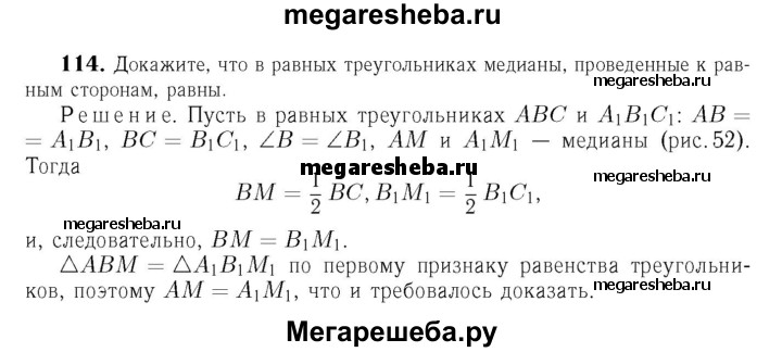 114 Докажите, что в равных треугольниках медианы, проведённые к равным сторонам, равны.