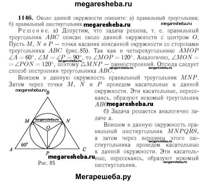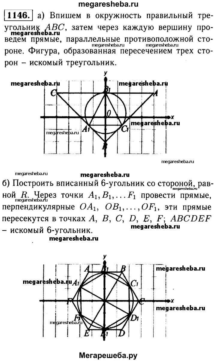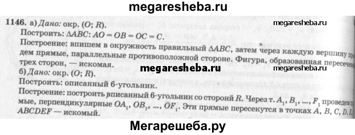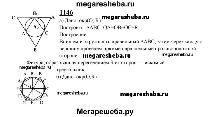 1146 Около данной окружности опишите: а) правильный треугольник; б) правильный шестиугольник.