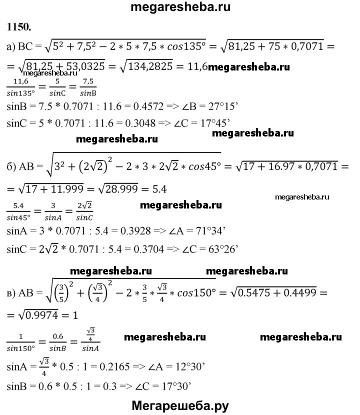 Гдз по геометрии 7-9 класс Атанасян, Бутузов ответ на номер № 1150