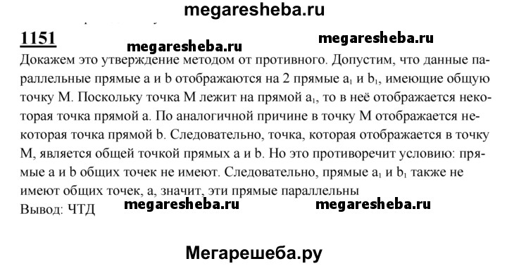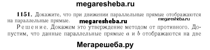 1151 Докажите, что при движении параллельные прямые отображаются на параллельные прямые.
