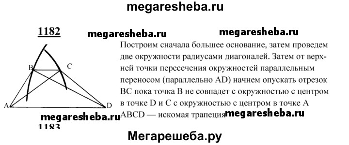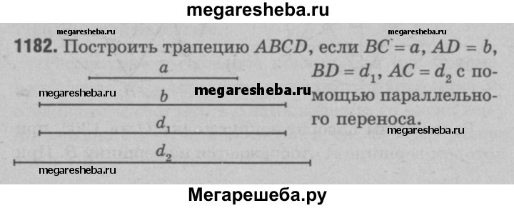 1182 Используя параллельный перенос, постройте трапецию по её основаниям и диагоналям.