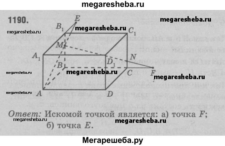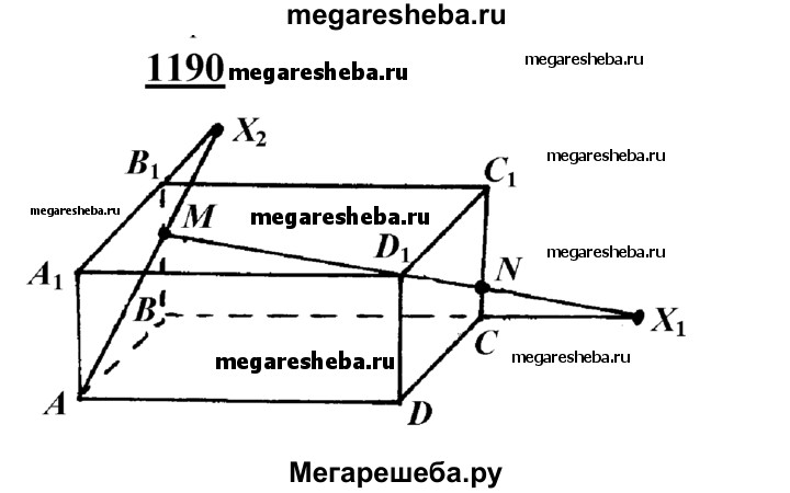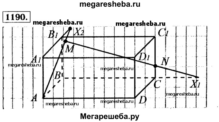 1190 Изобразите параллелепипед ABCDA1B1C1D1, и отметьте точки М и N соответственно на рёбрах ВВ, и ССХ. Постройте точку пересечения: а) прямой MN с плоскостью ABC; б) прямой AM с плоскостью А1В1С1,.