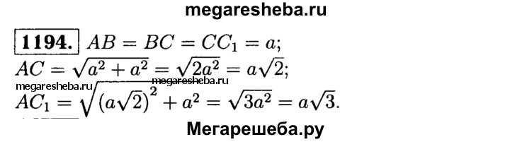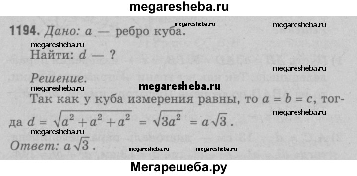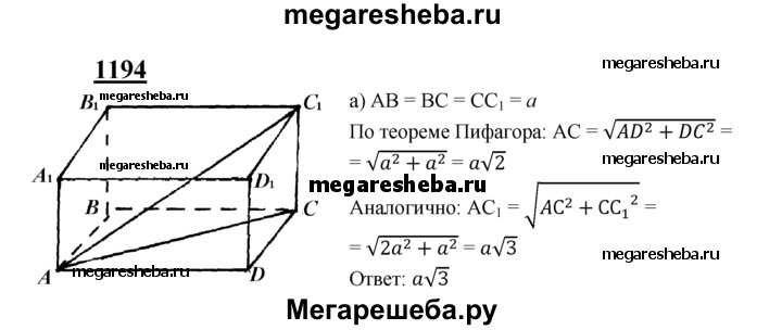 1194 Ребро куба равно а. Найдите диагональ этого куба.