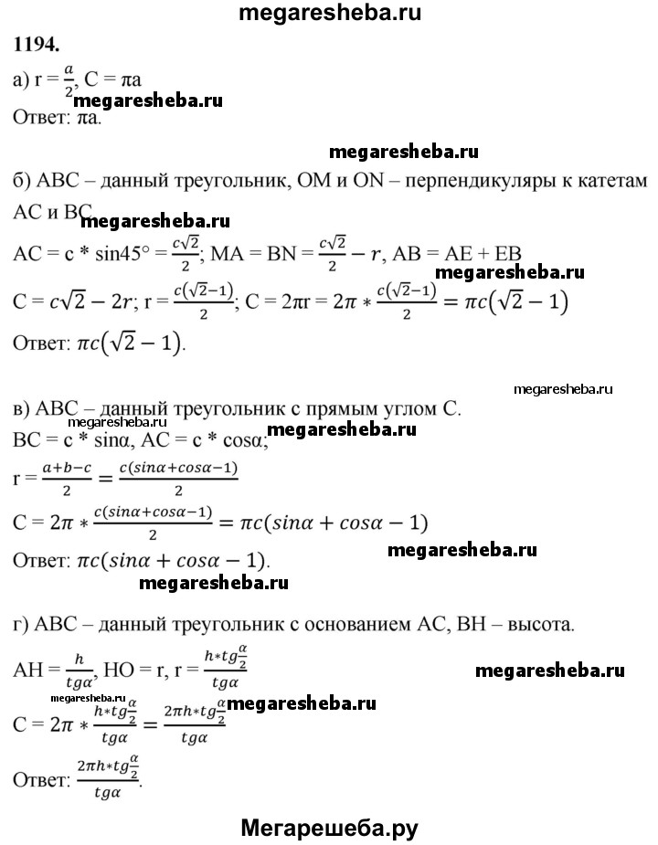 Гдз по геометрии 7-9 класс Атанасян, Бутузов ответ на номер № 1194