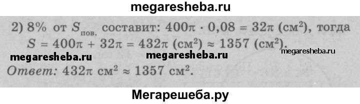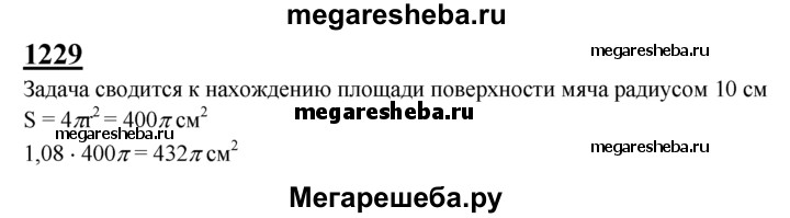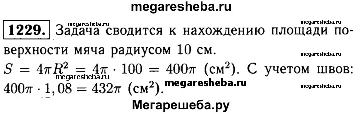 1229 Сколько кожи пойдёт на покрышку футбольного мяча радиуса 10 см (на швы добавить 8% от площади поверхности мяча)?