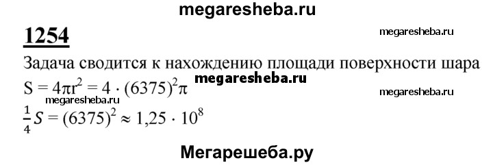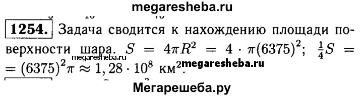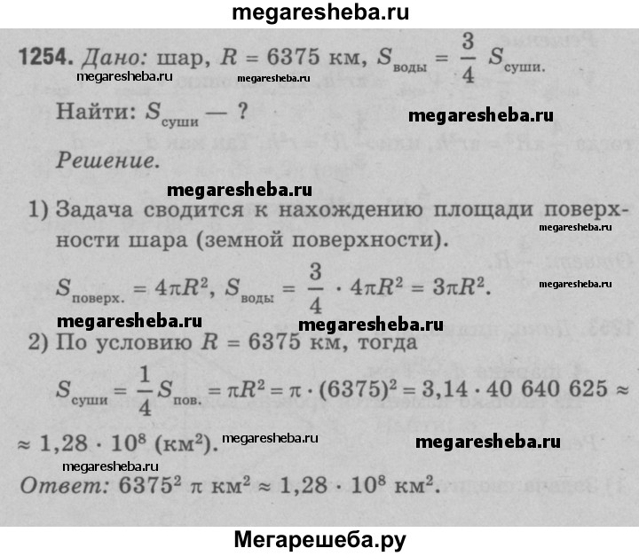1254 Вода покрывает приблизительно — земной поверхности. Сколько квадратных километров земной поверхности занимает суша (радиус Земли считать равным 6375 км)?