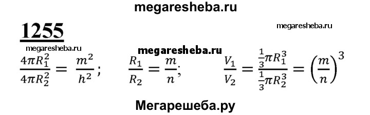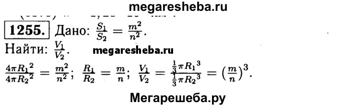 1255 В каком отношении находятся объёмы двух шаров, если площади их поверхностей относятся как m2: n2?