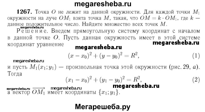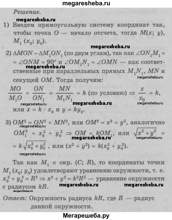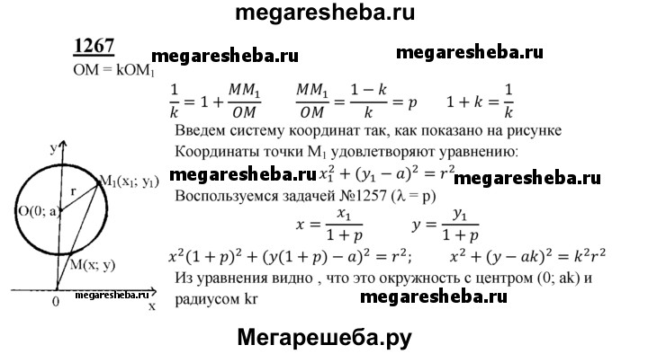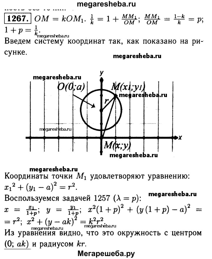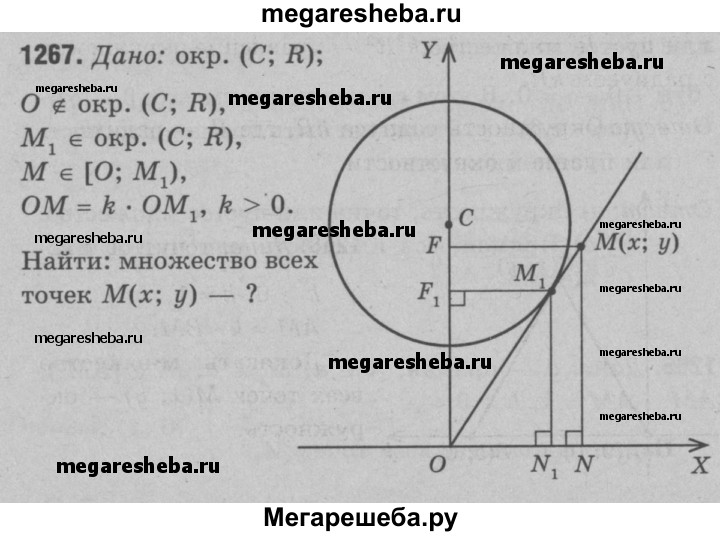 1267 Точка О не лежит на данной окружности. Для каждой точки М1 окружности на луче ОM1 взята такая точка М, что ОМ =k ̇ ОМ1 где k — данное положительное число. Найдите множество всех точек М.