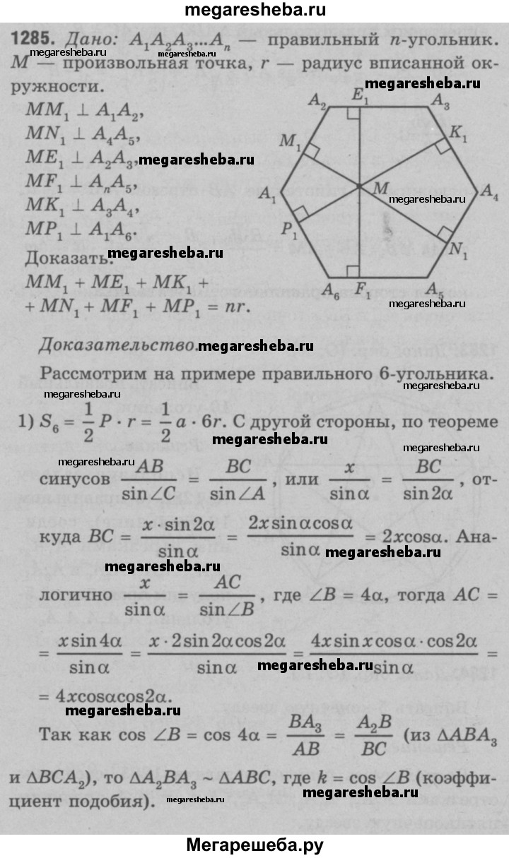 Подробный решебник (ГДЗ) по Геометрии за 7‐9 (седьмой‐девятый) класс - готовый ответ задача - 1285. Авторы учебника: Атанасян, Бутузов, Кадомцев, Позняк, Юдин. Издательство: Просвещение 2016-2025.
