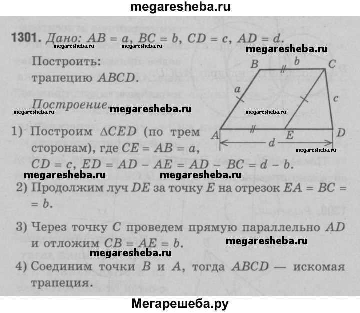 1301 Постройте трапецию, стороны которой соответственно равны данным отрезкам.