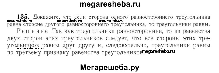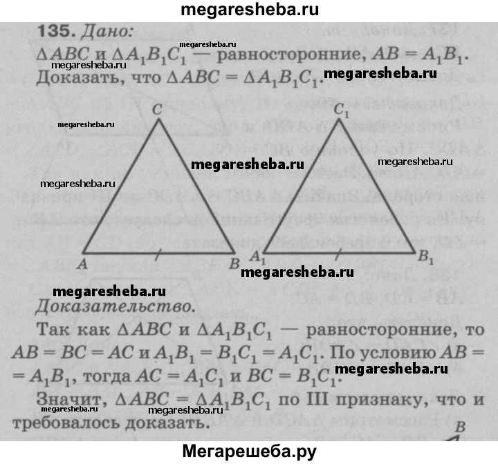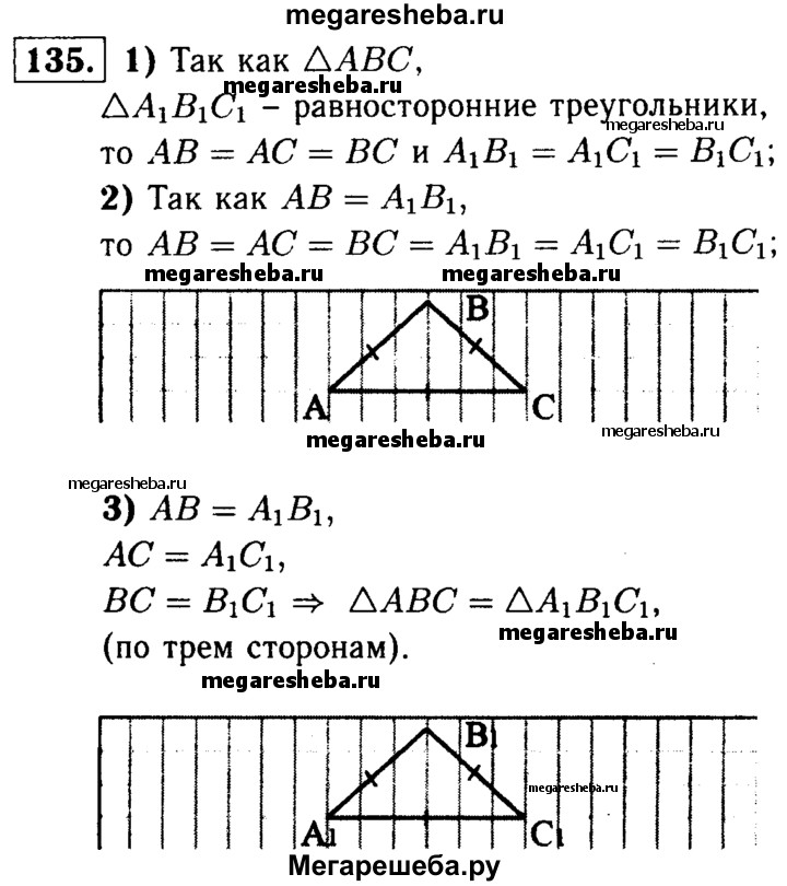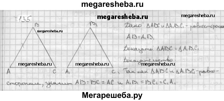 135 Докажите, что если сторона одного равностороннего треугольника равна стороне другого равностороннего треугольника, то треугольники равны.