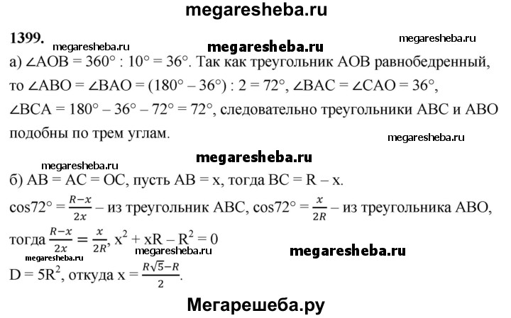Подробный решебник (ГДЗ) по Геометрии за 7‐9 (седьмой‐девятый) класс - готовый ответ задача - 1399. Авторы учебника: Атанасян, Бутузов, Кадомцев, Позняк, Юдин. Издательство: Просвещение 2016-2025.